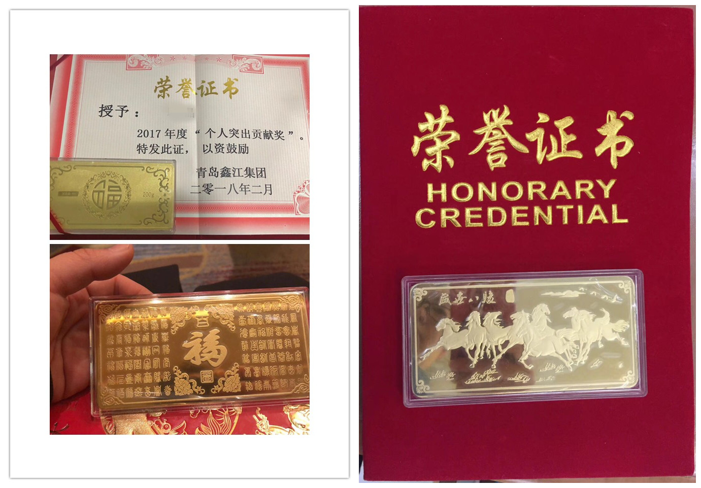 先進(jìn)個(gè)人獎(jiǎng) 獎(jiǎng)品100g金磚