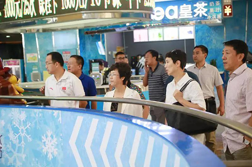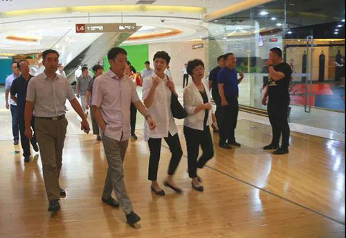 在開展調(diào)研工作過程中,鑫江集團的趙文博先生、方潤超女士和邱晶女士陪同各位領導參觀了繽紛東方真冰場、鑫江國際搏擊俱樂部、阿瑞斯健身、南冰輪滑等購物中心內(nèi)發(fā)展群眾體育工作的商戶。