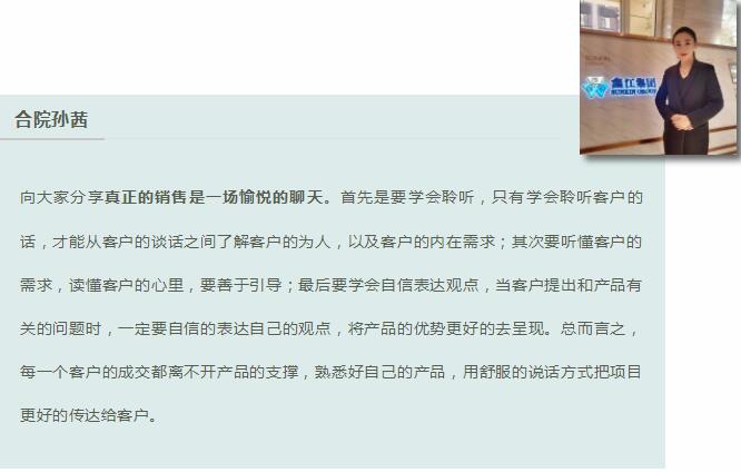 各項(xiàng)目經(jīng)理也根據(jù)自身從業(yè)多年的經(jīng)驗(yàn)向大家進(jìn)行了細(xì)致入微、引人入勝的分享。他們通過(guò)一個(gè)個(gè)真實(shí)、生動(dòng)的案例展示了自己如何不斷摸索探尋機(jī)會(huì),遇到困難絕不后退,鍥而不舍簽約成功等一系列過(guò)程。這些成功案例充滿了正能量,也凝聚著汗水與心血,得到了在聽(tīng)營(yíng)銷人員的共鳴,贏得了陣陣掌聲。