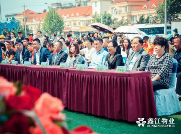 鑫江集團開發部總監孫永剛、鑫江東方城副總經理邱晶、鑫江東方城副總經理王曉磊、鑫江物業總監韓斌、鑫江國際搏擊俱樂部總教練劉金文、繽紛東方真冰場經理楊浩以及到場嘉賓共同開啟儀式,見證鑫江物業服務的新征程。