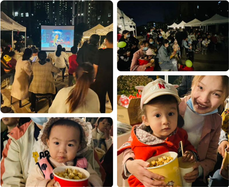 我們為業主準備了爆米花和果汁,邊吃邊看的露天電影,是否勾起你的童年記憶了呢?