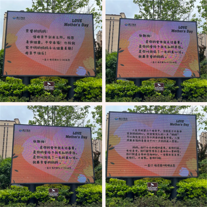 換個方式向媽媽告白吧!母親節(jié)當(dāng)日,物業(yè)LED屏化身為“表白墻”,把您想對母親說的話,向媽媽們表達你的愛吧!