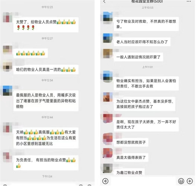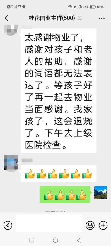 孩子的爸爸在業(yè)主群里也對鑫江物業(yè)表示極大的感謝,在當(dāng)日去往物業(yè)服務(wù)中心向物業(yè)管家表達(dá)謝意。