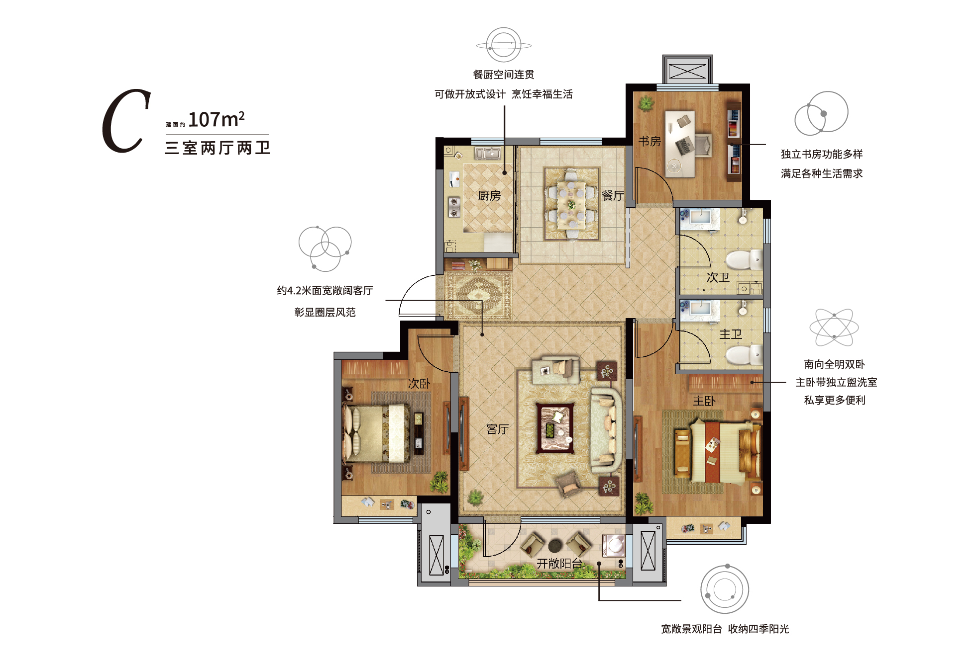 目前在售產品80㎡、85㎡爆款活力兩居,97-107㎡全明三居,全明方正戶型,南北通透,全能實用,2-3室功能優越,南向大面寬與飄窗,科學劃分生活空間,打造全家庭式舒居體驗!目前已推未售房源分秒遞減,搶購從速!