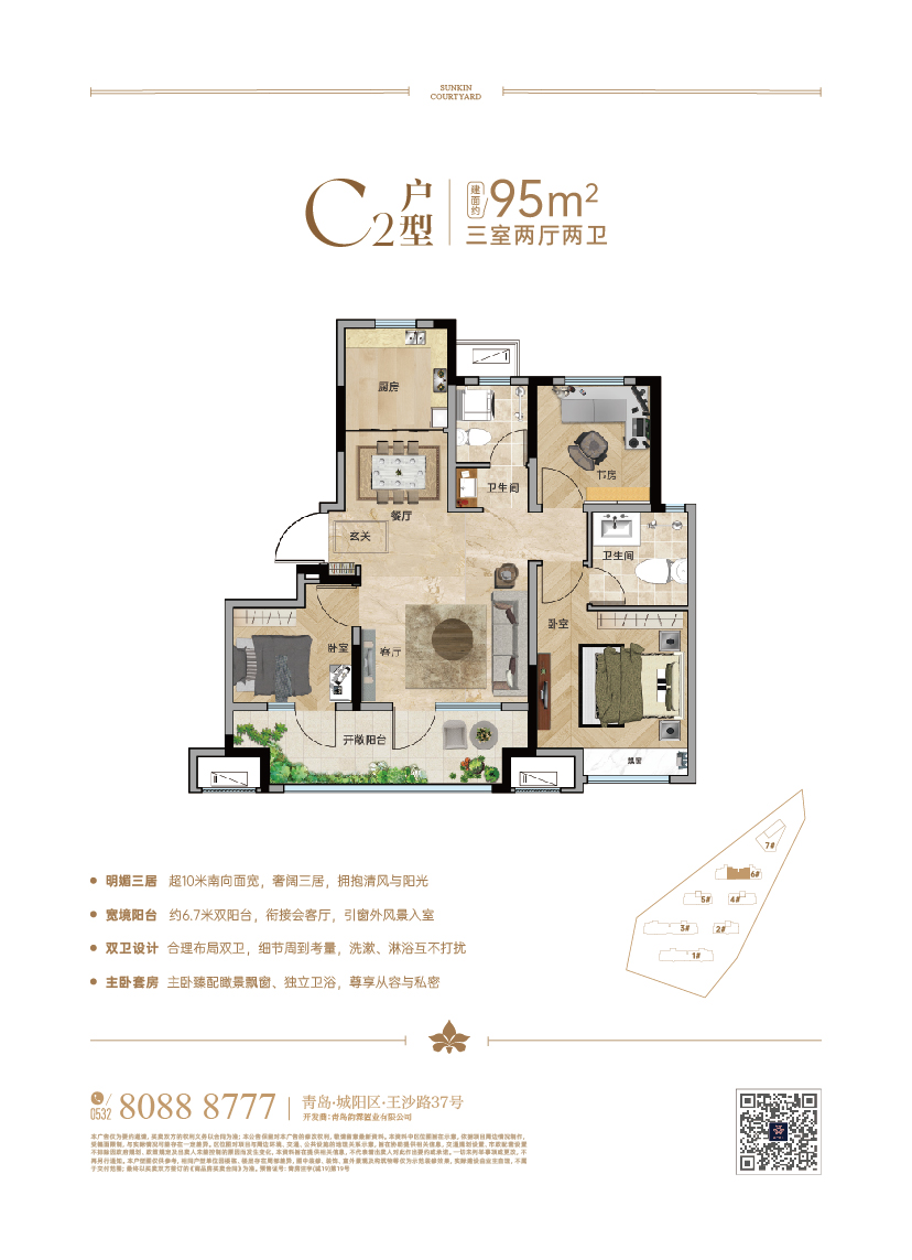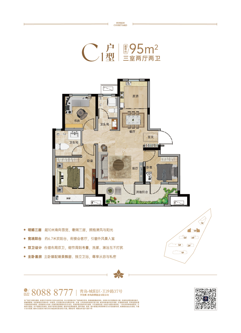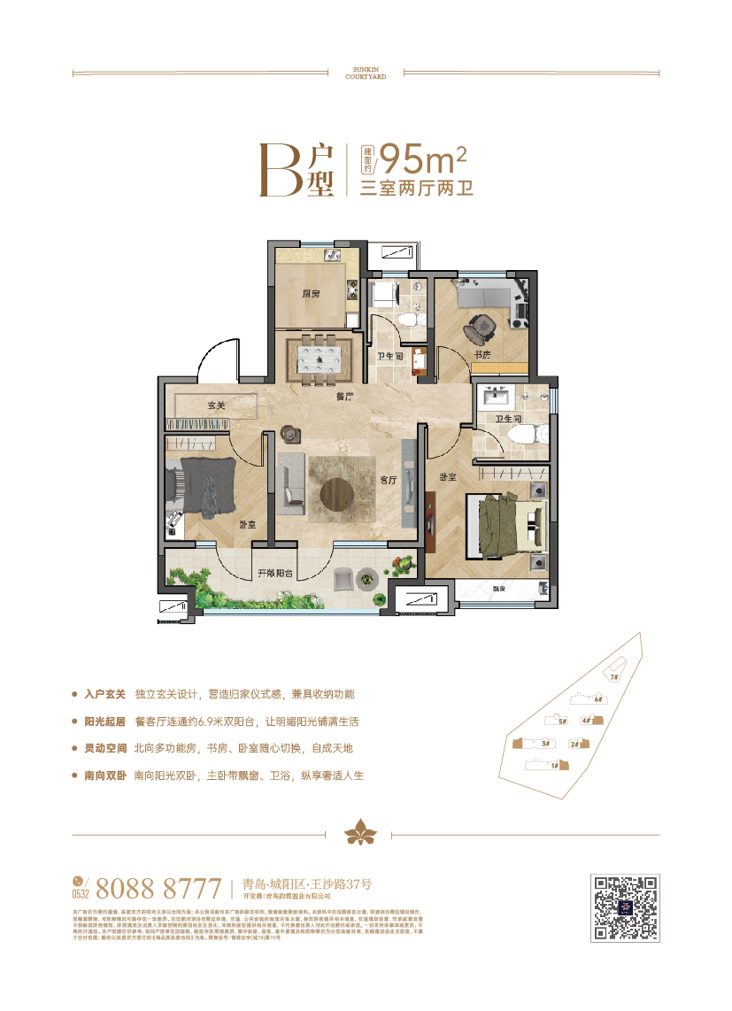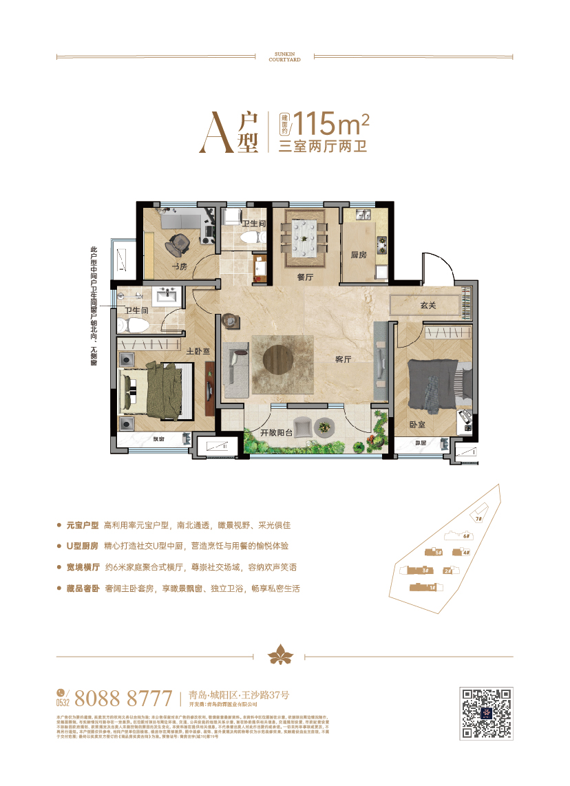 項目雄踞丹山宜居片區,與鑫江合院1-3期毗鄰;項目東望太和山壯麗景色,環依河水一脈,南側為云頭崮水庫,動步公園,丹山公園環伺,山水湖交相呼應,繁華城市對話靜謐自然。